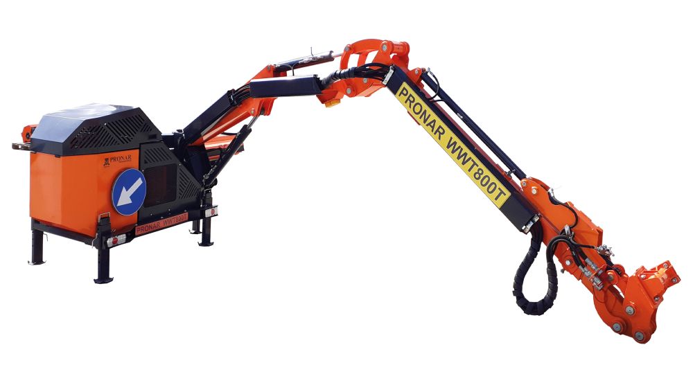 Der Multifunktionalen Ausleger Pronar WWT800T/WWT804T werden am Heck des Traktors montiert und über die hintere Zapfwelle angetrieben. Sie eignen sich hervorragend zum Mähen und Freiräumen von Straßengräben sowie zum Beschneiden von Ästen überall dort, wo der Einsatz anderer Geräte aufgrund von Schutzplanken oder schwierigem Gelände eingeschränkt ist.