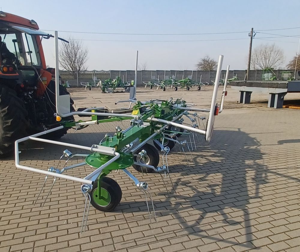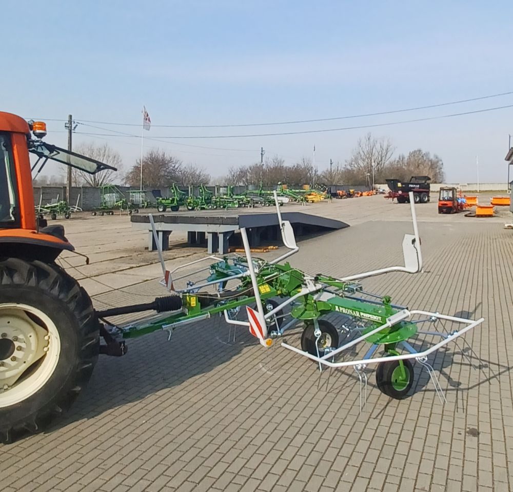 Причіпний ворушитель валка PWP530T оснащений чотирма роторами, кожен з яких має сім робочих важелів, що гарантує рівномірний розподіл рослинної маси та високу продуктивність до 5,3 га/год.